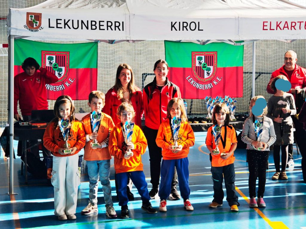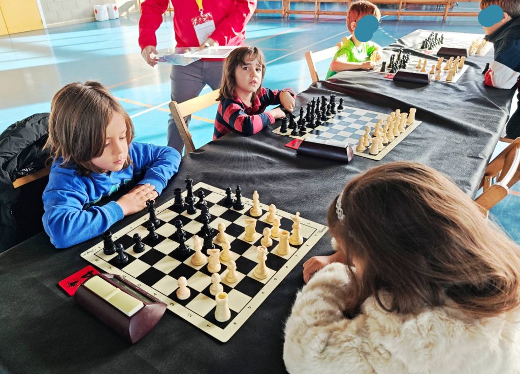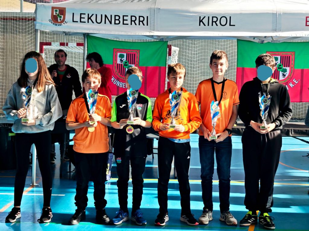 Eneko Rebollo con 4/7 y Adei Esparza con 3,5/7 anduvieron en las primeras mesas y cuajaron una buena prueba, pero no tuvieron suerte en los derbis. Un poco más abajo acabaron Julen Legarra y Lierni Estébariz, ambos con 3/7, así como Julen Nieto (2,5/7) y Aroa de Carlos (1,5/7). Todos ellos disfrutaron de sus primeras experiencias en el ajedrez de competición y lo pasaron genial.