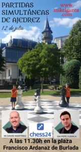 Nuestros jugadores se han estado midiendo a todos ellos disfrutando de todas las actividades que han pasado por la cabeza del organizador de todo esto, Mikel Urmeneta, famoso diseñador y creativo. Pero lo que bien seguro que disfrutaremos será el lunes 12 de julio en la plaza Francisco Ardanaz de Burlada, frente a nuestro local. 40 de nuestros jugadores se medirán en una partida simultánea (20 y 20) a Pepe Cuenca y Divis. Disfrutaremos todos, seguro.