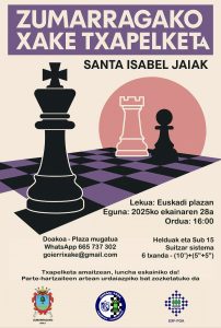 Uno de esos eventos es el que se celebró hace unos días en la localidad guipuzcoana de Zumárraga. A esta competición acudieron 37 aficionados para echar unas partidas. Fueron 6 rondas con encuentros a 5’+5″ en los relojes.