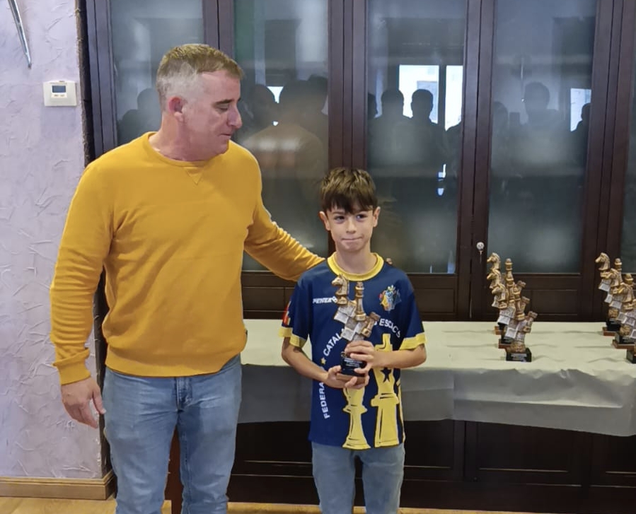 8- Yago Díaz 4,5/6: Fenomenal desempeño el realizado por Yago en la prueba, en la que no sólo obtuvo el premio de mejor jugador sub10, sino que de hecho fue el mejor jugador infantil. Estuvo a nada de obtener también el galardón de mejor ajedrecista sub1800 y con ello entrar en el reparto de los premios en metálico. Yago se mostró muy confiado en sus posibilidades y hasta obtuvo unas tablas ante un rival de casi 1700 Fide, en la que fue pragmático, aunque si alguien podía vencer en aquella partida ése era él. Felicidades.