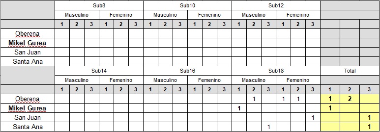 Por parte de los nuestros, nada menos 15 jugadores de Mikel Gurea y 5 de Mikel Deuna se animaron y cruzaron la avenida María Azcárate para participar en el Open. Sus resultados fueron éstos: