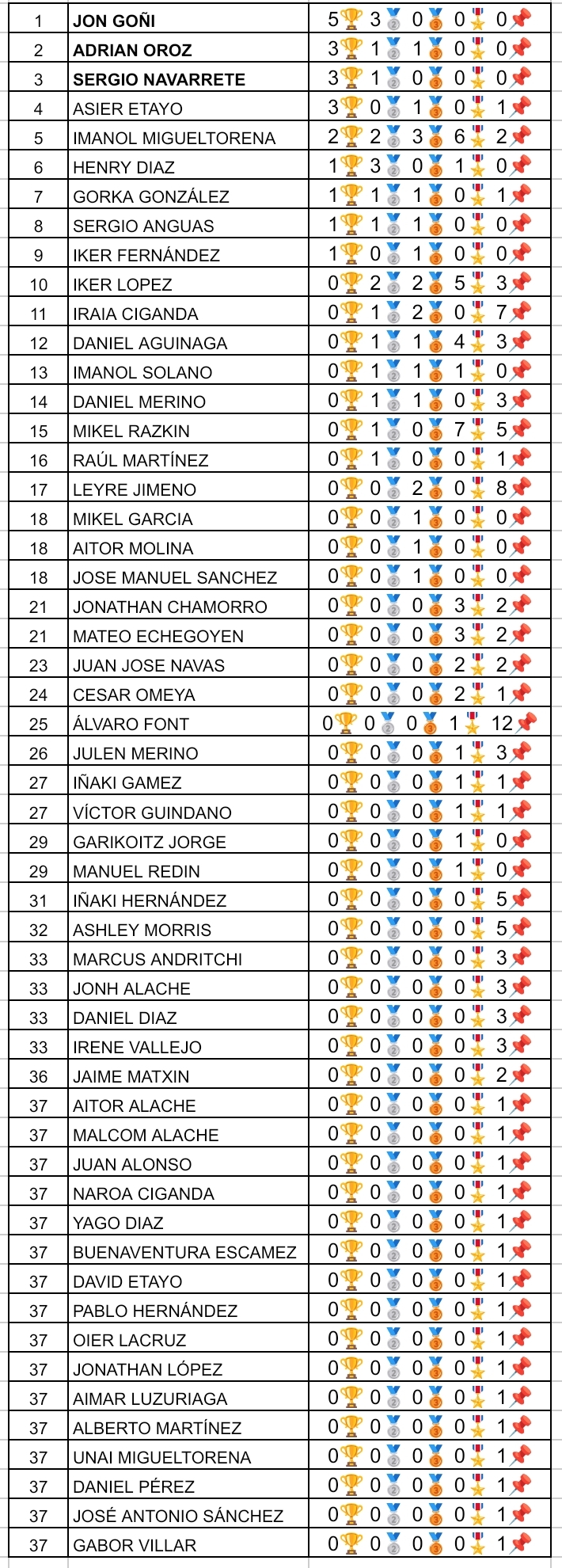 Los resultados de los nuestros en la prueba fueron los siguientes: