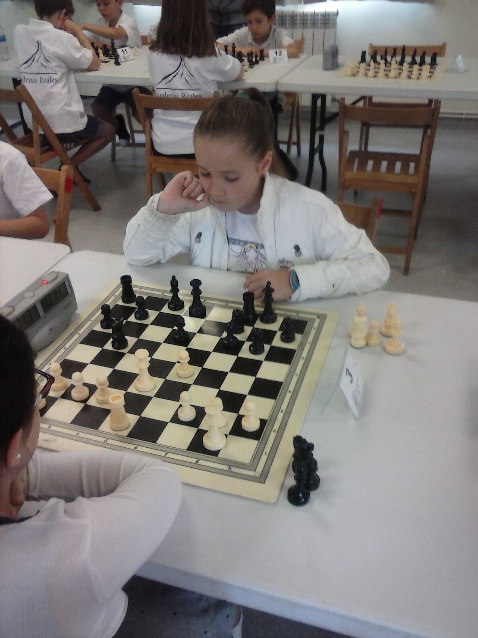- Cristina Abdulla (sub 12). La progresión de Cristina, teniendo en cuenta que solamente lleva jugando 2 años, es impresionante. Aunque sobre el papel solamente consiguió la mitad de los puntos (3/6), la mala suerte le impidió puntuar e incluso ganar partidas en las que llegó a posiciones realmente prometedoras contra rivales con mucha más experiencia en este mundillo. Como su evolución ajedrecística siga estos cauces estamos seguros de que sus resultados cada vez van a ser cada vez mejores y de que en breve se convertirá en una habitual en el pódium de los torneos escolares.