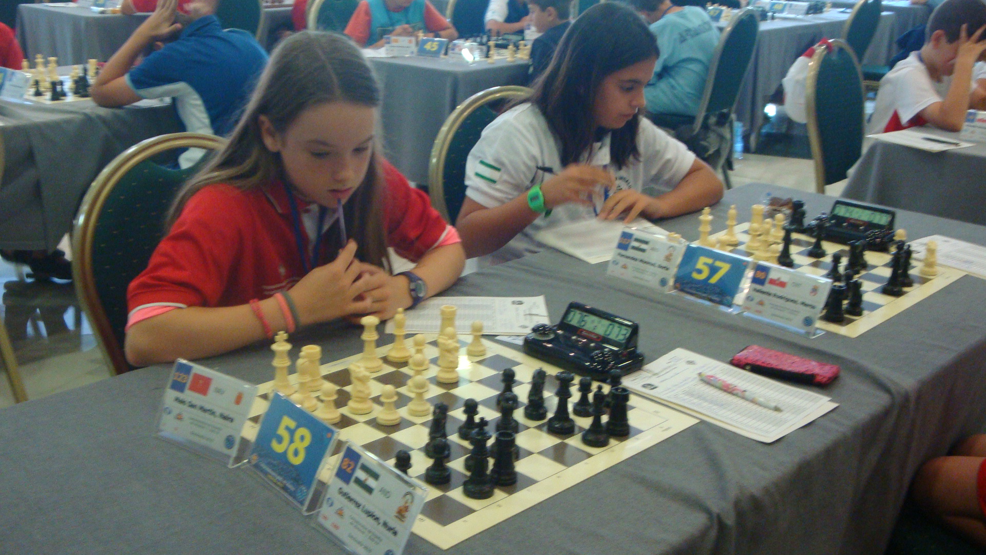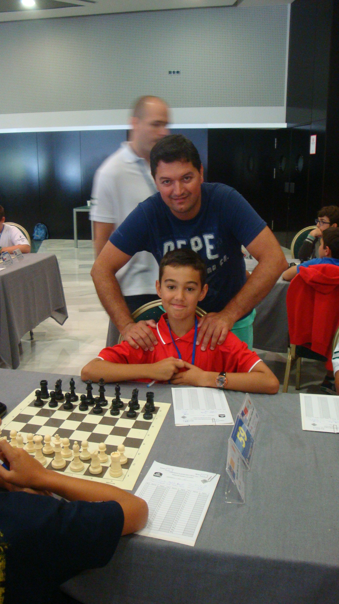 Poco antes de las 10.00 acudimos a la sala de juego, ya que la tercera ronda está por comenzar. Como ocurría en el sub 10, los últimos minutos previos a la disputa de la partida de dedican a dar ánimos, suerte, últimos consejos…