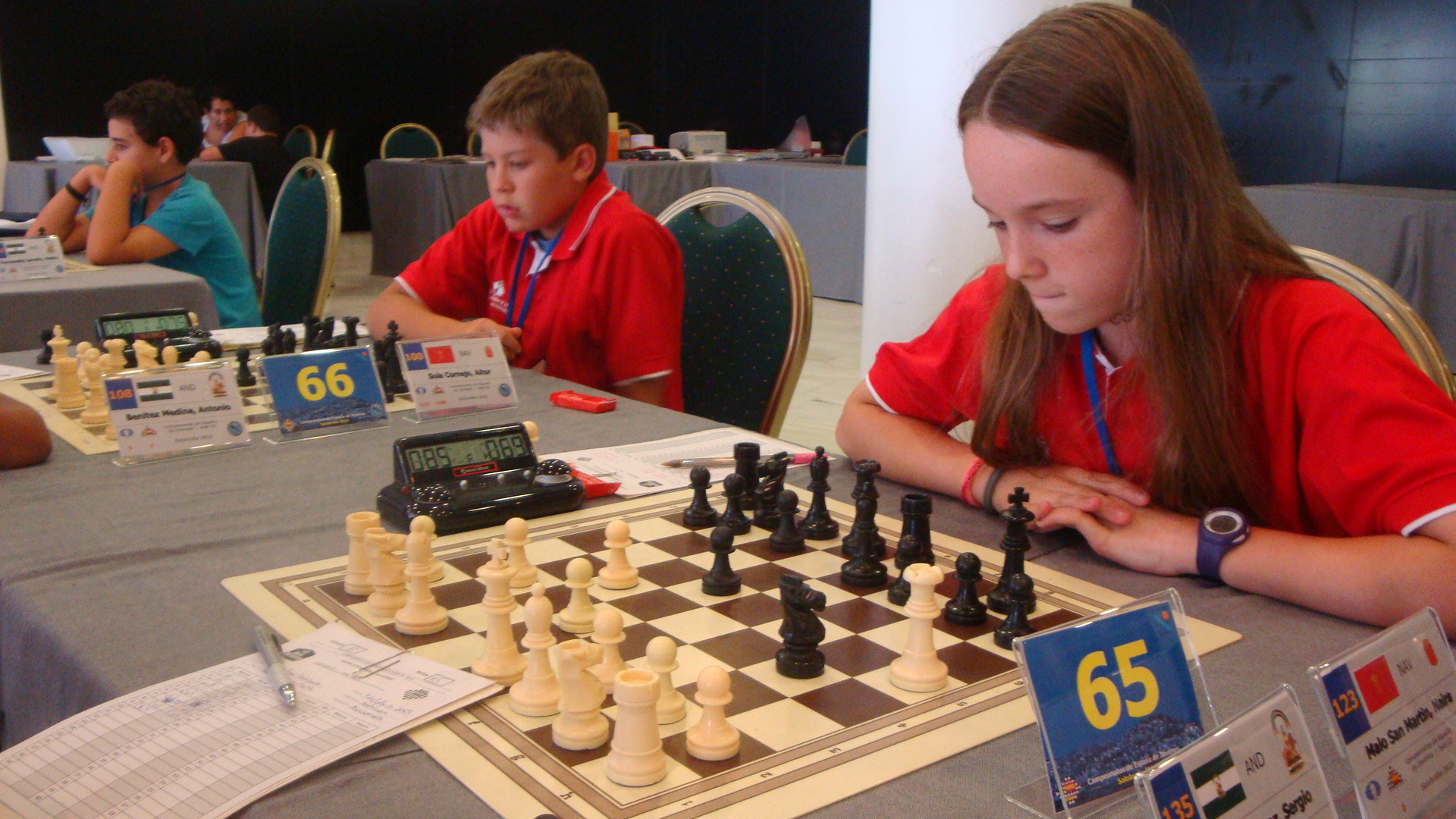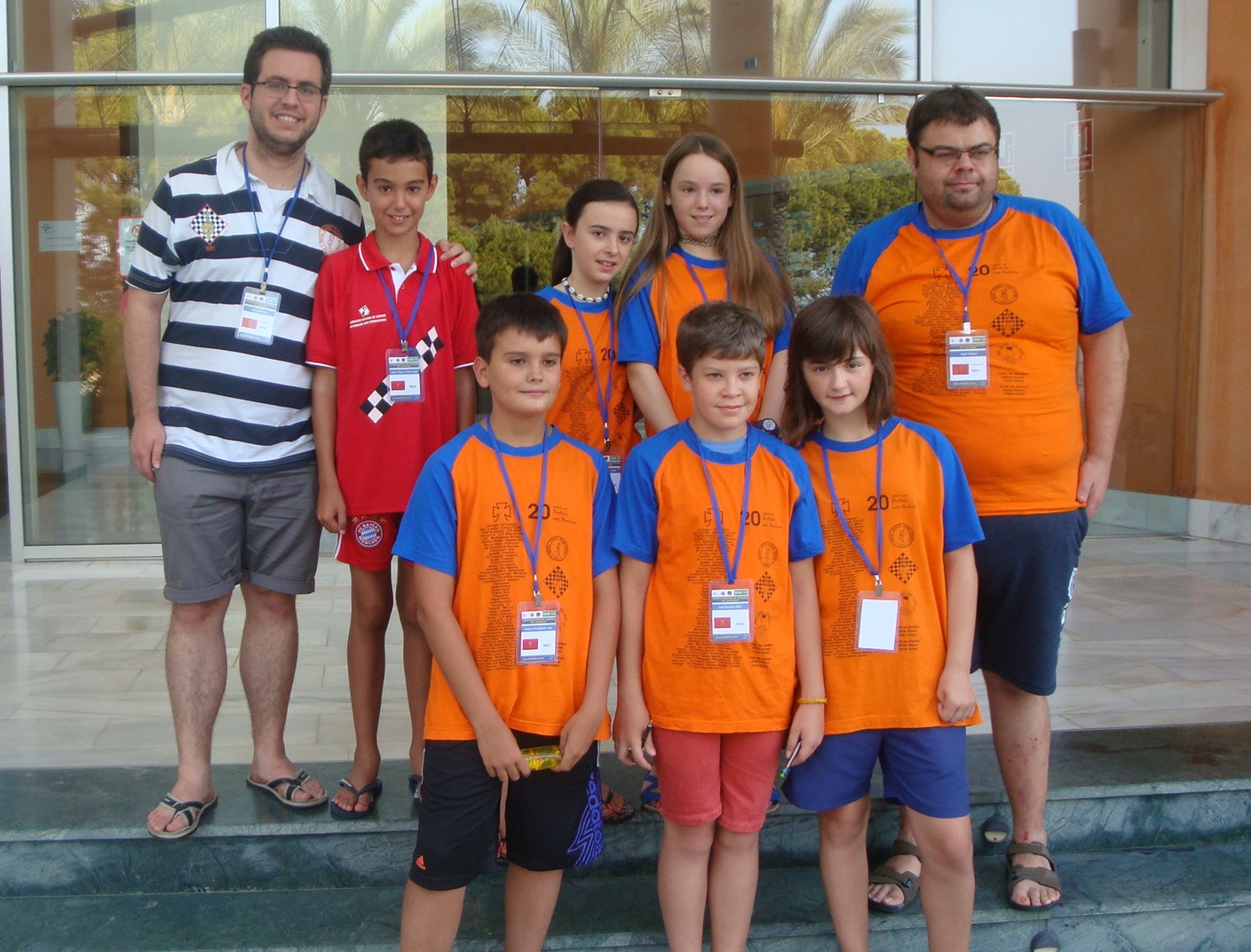 Vuelta al cuarto para una ducha rápida (dentro de lo que la alcachofa y su manía de no echar agua caliente permitía), chocolatinas a la bolsa y para la sala de juego. Justo antes de empezar, los monitores y jugadores de la escuela de ajedrez de Burlada nos sacamos una foto todos juntos, de tal manera que siempre nos quedará un recuerdo de esta bonita semana. Las rutinas habituales previas al inicio de la ronda se suceden con rapidez, ya que con puntualidad británica el equipo arbitral invita a acompañantes no acreditados a desalojar la sala, tras lo cual da comienzo la ronda.