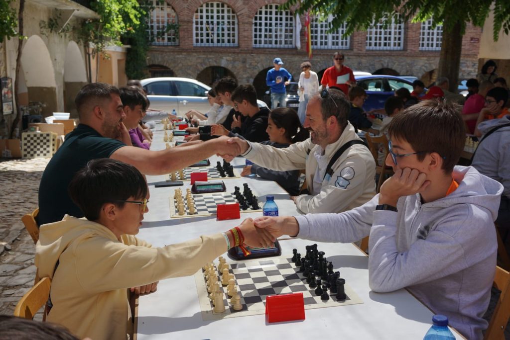 Un total de 83 ajedrecistas, entre los que había un MI, un MF y un CM, se sumaron a las 7 rondas con 10’+3″ que llenaron toda la mañana de buenas partidas. Las rondas se fueron sucediendo en hora sin ningún tipo de sobresalto y con una entrega de premios muy ágil y dinámica que reconoció a todos los participantes con un detalle. Miel, embutidos variados, melocotones, artesanía, camisetas… El Ayuntamiento de Yanguas no escatimó en agasajar a los visitantes de este precioso pueblo medieval que hay que ver; no te lo pierdas. Acostumbrados como estamos en Navarra a que los torneos se hagan para ganar dinero, hacerlo en un gratuito con este nivel de premios y regalos es digno de ser mencionado.