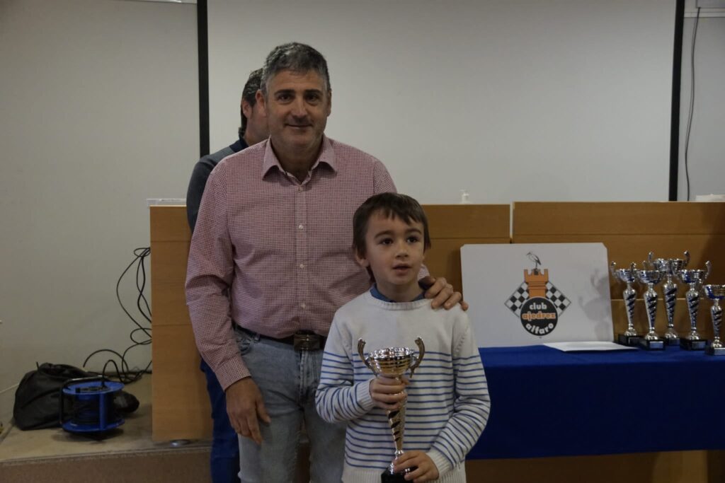 Este año sólo pudimos llevar a dos jugadores al torneo dado el volumen de competiciones que hay por estas fechas. Y los dos lo hicieron genial, por cierto. El torneo se disputó a un total de 6 rondas de partidas de 15′ y se dividió, como es costumbre, en dos categorías con niños de hasta sub14: la B para los niños y niñas menos experimentados de la Escuela de Alfaro y la A para todos los jugadores de mayor nivel o de fuera del Club.