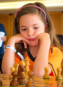 95- Máxima Morris 2,5/9: Máxima es una jugadora tranquila, que gestiona a la perfección los tiempos y que revisa todo un par de veces antes de mover. Fue ella durante las tres primeras rondas y ya nos frotábamos las manos sus profesores con verla luchar por ser campeona de España. Iba 2/3. En una de esas rondas intermedias se cruzó con un niño maleducado que la sacó del tablero a base de menosprecios y vulgaridades que soltaba por su boca, alentado por otro par de compañeros que le reían las gracias. Máxima, sola en la sala de juego con 7 años, no supo cómo defenderse y ya prácticamente no quiso jugar más. Pero ella es una campeona, lo es de Navarra sub8 pese a ser sub7, y trató de sacar fuerzas de flaqueza y terminó el torneo. Finalmente acabó tercera de España sub7, lo que es un logro fenomenal que en verdad nos sabe a muy poco por su verdadero potencial. Ningún tipo de apoyo al respecto por parte de la FNA cuando se les informó al respecto; ninguno.