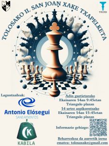 Colaboran: Ayuntamiento de Burlada, Casa de Cultura de Burlada, A10 Inmobiliaria, M2 Fontanería y Climatización, Cervecería Williams, Federación Vasca de Ajedrez, Cafetería Toskana, Harivenasa, Skape Room Iruña, Bar Echave, Bar Tolo’s, Bar Hobeki, Joyería Domínguez, Farmacia Herboristería Astiz, Carnicería Josetxo, Carnicería Saijana, Carnicería Larragueta, Floristería Garralda, Floristería Pétalos, Óptica Burlada, Regalos Gil, Bar Ibaialde, Óptica Egüés, Hotel Villava, Hotel Burlada, Casa Jacinto, No Brain No Future, C.A. Orvina, C.A. Mikel Deuna…