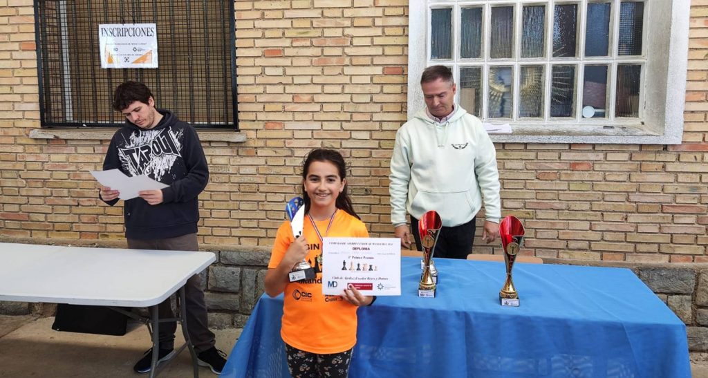 El nivel de juego y comprensión de las estructuras y posiciones que está demostrando esta temporada Adrián Oroz es asombroso. Ha comenzado la universidad y ha dado un salto de madurez brutal en todos los sentidos. Su temporada está siempre para enmarcar y está muy cerca de superar la barrera de los 2200 Elo Fide. Así que a nadie le extraña sus 7/7 de este viernes, en el que superó las dificultades que todos y cada uno de sus oponentes le plantearon, dado que tenerlo en frente es para todos ellos una oportunidad de obtener un resultado magnífico. Otro joven que no le va a la zaga y que ya ha superado la barrera de los 2000 siendo sub14 es Jon Goñi, que firmó 6/7. Se llevó la plata dejando en el tercer peldaño del pódium a su compañero de categoría, Mateo Echegoyen, que ubica su rating por encima de los 1900. Con esos ratings, la victoria ante estos dos canteranos es siempre un jugoso premio, pero ambos fueron capaces de deshacerse de sus perseguidores y en justicia obtuvieron estos buenos resultados.