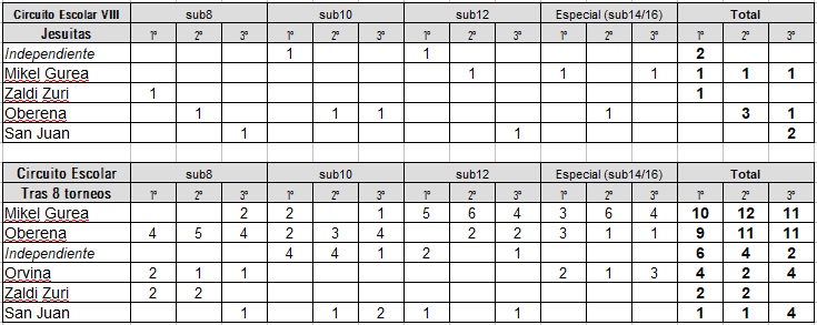 Y tras la ”debacle” llegaba el subidón. Solo entonces se nos ocurría mirar la clasificación a ver cómo habíamos quedado. Los equipos que nos empataban a puntos habían perdido. Los que venían por debajo no nos pillaban. La victoria no hubiera supuesto nada que no nos diera el empate. Y Amaiur Ikastola finalmente era tercero de la competición, de todo un Campeonato de España de colegios.