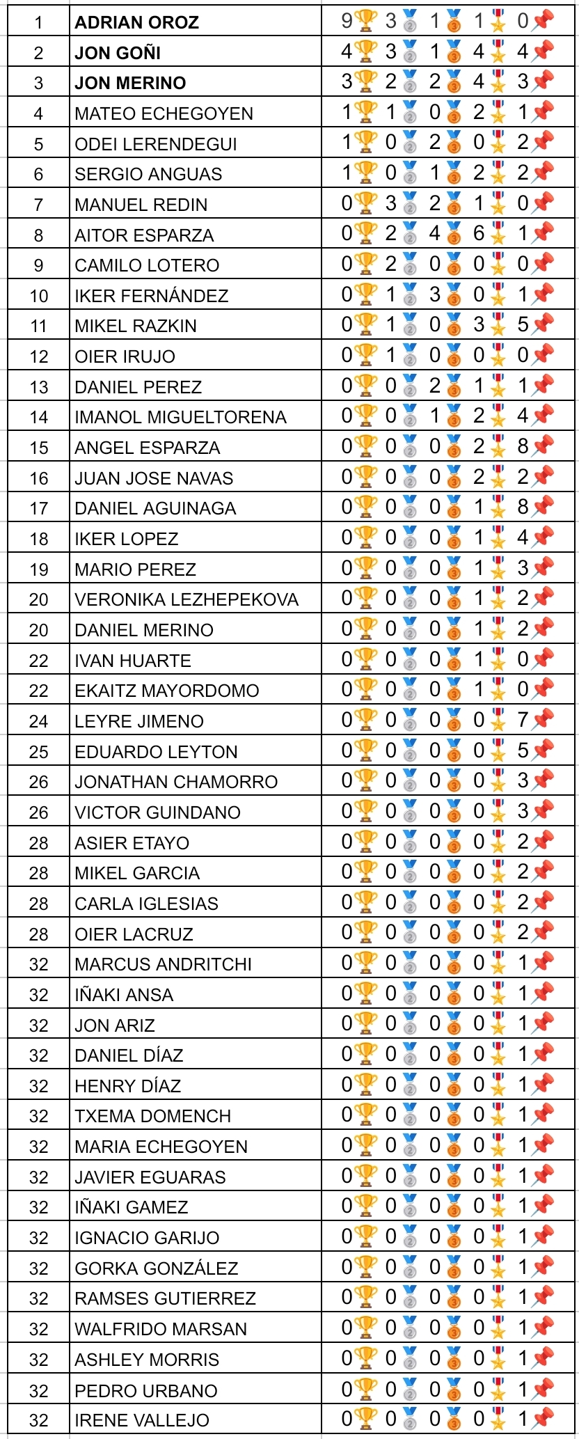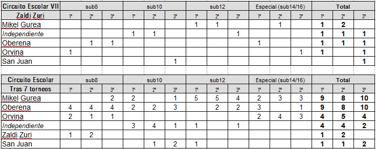 A continuación señalamos la clasificación de los colegios en los que participaron nuestros alumnos de la escuela de Mikel Gurea o en la que imparten clases sus monitores: