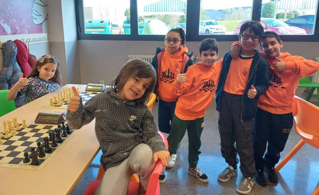 64- Camino de Santiago (6 – 14,5): El equipo del colegio de Zizur Mayor estaba compuesto por Mikel Lazcoz (7), que volvió a instalar su dominio en la primera mesa con suficiencia apoyando a sus pequeños compañeros de viaje, todos ellos sub8. Lideró a un colegio muy joven, con un Enai Fulgencio (6,5) que se salió y hasta ofreció entrevistas (ver aquí) y unos Iker Campos (0) y Julen Escudero (1) que lucharon un montón. Cuatro empates y una victoria para ello; not bad.