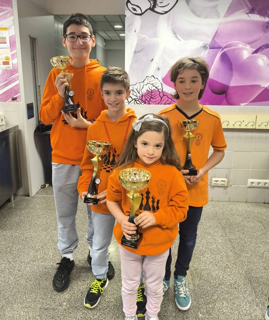 69- Vázquez de Mella (5 – 12): Los chavales de Vázquez de Mella llevan poco más de un mes preparando este torneo y a partir de ahora van a trabajar con los monitores del club. En tan poco tiempo Jimena Elguero (1), Román Dávila (2,5) y Santiago Elguero (0) disfrutaron de su primer contacto con este deporte, pero es que los resultados obtenidos por Mario García (4,5) y Guillermo Elguero (4) son dignos de tomar en consideración. Pero independiente de ello, tras poco más de 6 horas de clases… dos victorias y un empate. Olé.