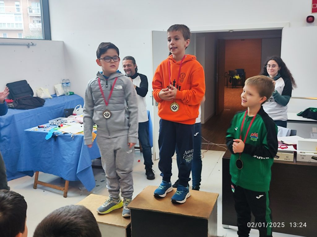 Poco tardó Mateo Echegoyen en aceptar la propuesta de tablas de Óscar Díez para firmar las paces y el 2-2. Durante la apertura nuestro sub14 se sintió cómodo y acumuló minutos para poder usar en el medio juego, pero al no encontrar nada ambos deambularon con torre, alfil y varios peones sumando medio minuto en cada intento de romper la igualdad. Mateo fue el que más lo intentó, pero no pudo ser y las tablas acabar por hacer justicia a lo visto en esta partida y en el match. Su recompensa: +6 de Elo para él.