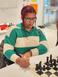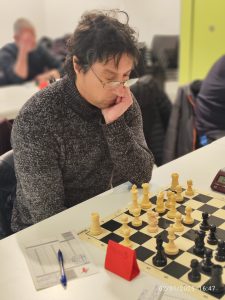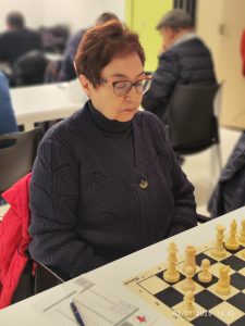 14- Fatyma Souza (MG) 1,5/6: Fatyma ha llegado al ajedrez para hacerse un hueco. Ya lo hizo llevándose el premio de la categoría de +50 en el Ciudad de Pamplona en la Ciudadela hace unos meses. Ahora se hace con el título navarro de su categoría, evidenciando además que su fuerza de juego está muy por encima de lo que dicta su ranking, como bien se vio en su encuentro ante Adolfo Ruiz, a quien tuvo sentado cerca de tres horas en un final en el que los potros de Fatyma eran unos auténticos diablillos.