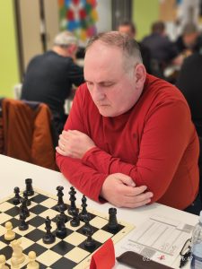 La mesa 1 es propiedad de CM Alexandr Pedchenko, que se enfrentó a un Asier Lakuntza que también ronda los 2200. Esto es, un encuentro de campanillas, de los que los buenos aficionados quieren ver. Alex se mostró agresivo en su juego con blancas y apretó en el reloj a su rival, que acabó con menos de 10′ por casi la hora en el cronómetro de nuestro capitán. Sin embargo, Asier se defendió bien y logró una combinación que le daba las tablas por repetición para no ceder material en su propio enroque. Tablas para empezar (+0,4 de Elo).