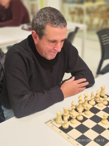 Con 1,5-0,5 fueron muchos los minutos en los que Iker Fernández probó suerte a ver si conseguía desatascar la posición en la que se medía a Joseba Izquierdo. Tras una apertura en la que hubo fuegos artificiales, los alfiles del de Beasain anduvieron más listos que las piezas del de Burlada, a las que les costó tiempo y esfuerzo desarrollarse. Fruto de ello al final llegó el error de nuestro compañero, que Joseba no dejó pasar para conseguir pieza de más para poner equilibrio en el marcador. merma de -9 para Iker en su Fide.