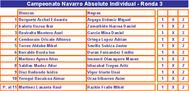Como ya hemos mencionado, Mikel Razkin y Alberto Almoguera se proclaman vencedores de esta I Edición de la Quiniela del Absoluto Individual. El premio, el poder decir “Soy el que más sabe del Ajedrez Foral” y hacer unas risas que ha sido lo que se ha intentado desde el principio. Más o menos 7 jugadores han aparecido todas las semanas en la quiniela y algunos lo han hecho ocasionalmente. Hay quien nunca ha perdido el ánimo y ha luchado por avanzar puestos en la clasificación.