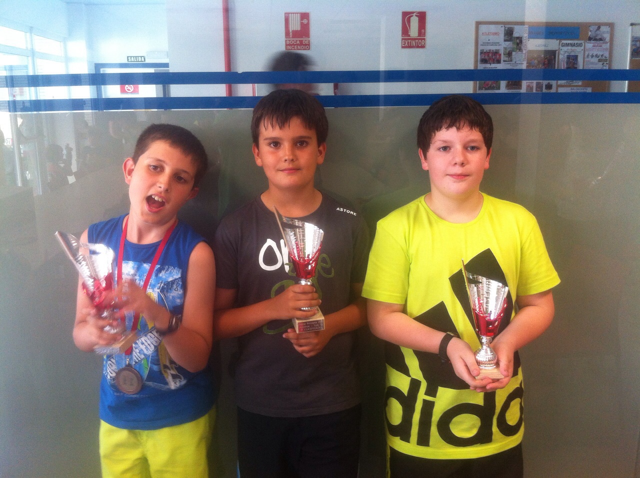Los tres jugadores de Mikel Deuna (Daniel, Unai y Xabier) con sus trofeos