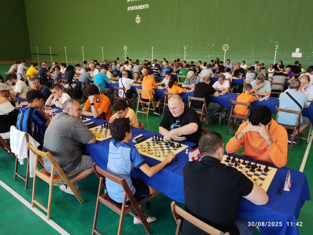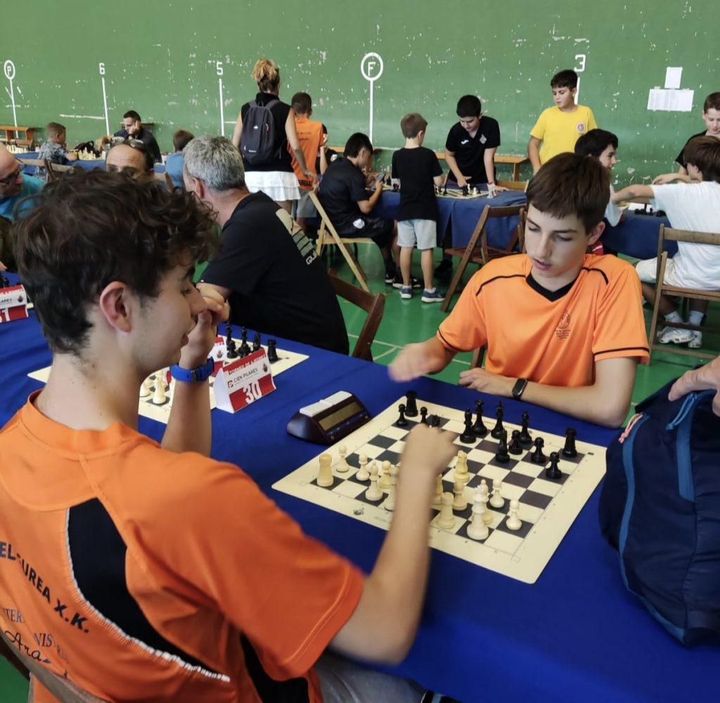 Por parte de los clubes de Burlada, Mikel Gurea y Mikel Deuna acudieron conformando un contingente abrumador, con 13 ajedrecistas. Espectacular la marea naranja, como siempre.