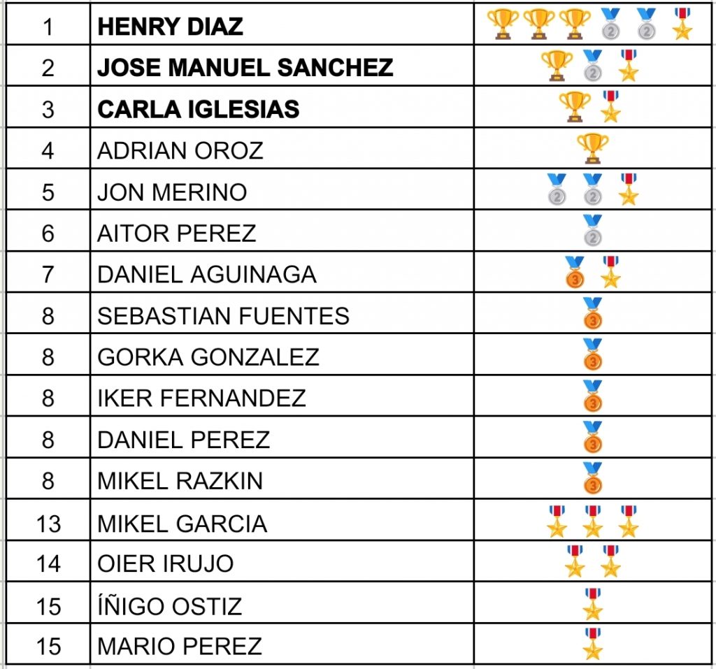 En cuanto a cómo va la clasificación de los torneos de la temporada, después de seis ediciones la tabla de mejores resultados es la siguiente: