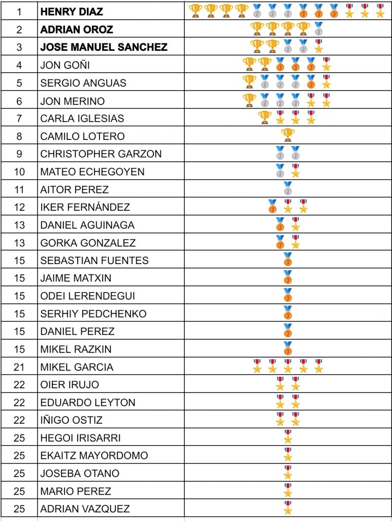 Ya son dieciséis los campeonatos disputados y la clasificación de los Torneos de los Viernes sigue de la siguiente manera: